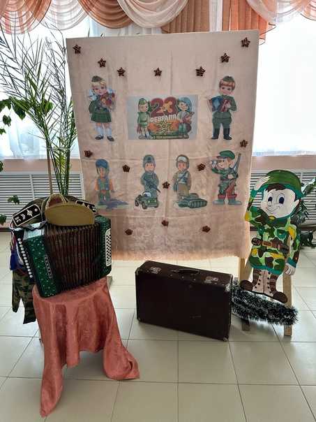 Получатели социальных услуг совместно с сотрудниками учреждения подготовили фотозону к празднику Защитника Отечества