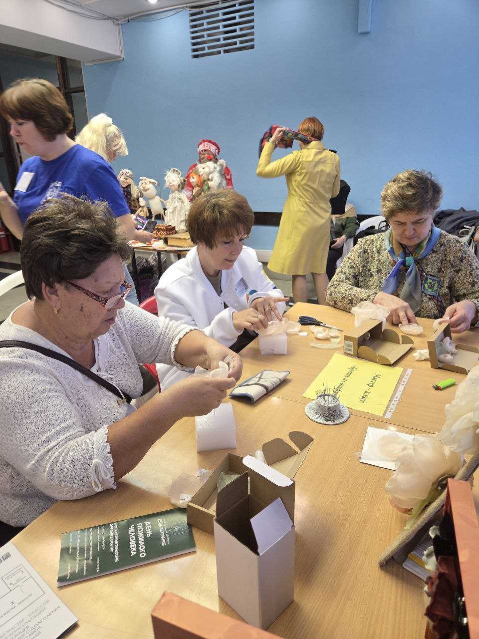 Выставка творческих работ, showcasing таланты и умения пожилых людей