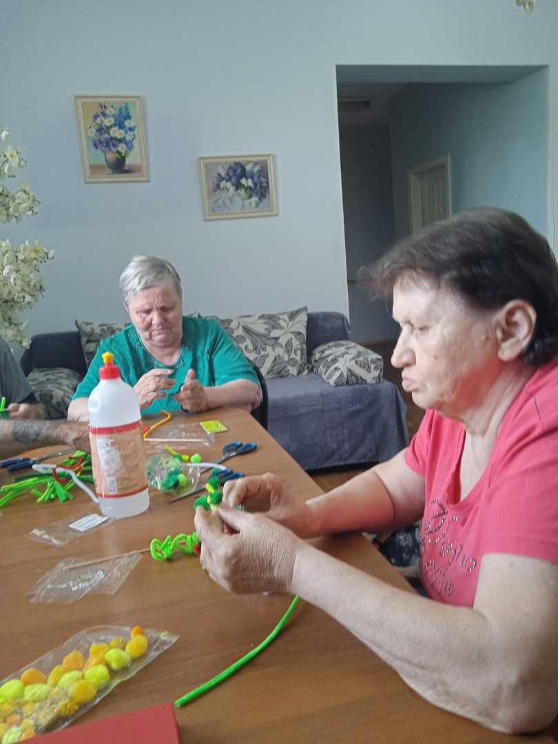 Сегодня в Доме – интернате прошел мастер – класс по изготовлению веселых гусеничек из синельной проволоки. Которые в качестве сувениров отправятся в зону СВО, чтобы порадовать бойцов.