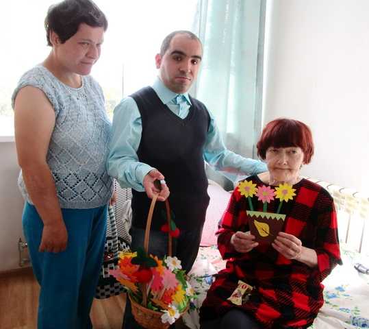 В преддверии праздника ребята подготовились, сделали своими руками поделки-сувениры и открытки для наших бабушек и дедушек, с написанными добрыми поздравлениями и пожеланиями. В ходе акции сотрудники вместе с ребятами посетили пожилых людей, поздравили их с праздником, вручили им свои подарки и угощения, искренне пожелали доброго здоровья, долголетия и хорошего настроения.