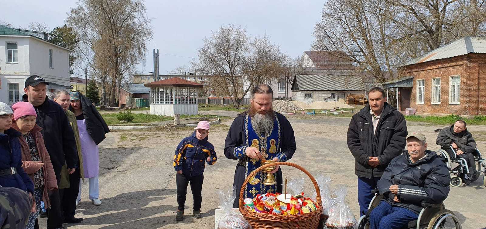 23.04.2022г. в преддверии праздника Пасхи ГБУ «Навашинский ПНИ» посетил протоиерей Андрей, был отслужен молебен, освещены Пасхи, яица , помещения. От храма и прихожан были получены подарки, специально связанные курочки с яичком. И подарки что просили ранее ПСУ, а именно крестики, цепочки, гайтанчики, иконы и православную литературу для духовного чтения.