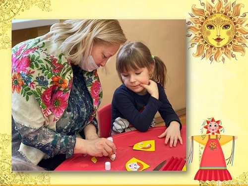 Этот праздник принято встречать блинами и веселыми играми. Почему пекут блины и что они символизируют? Какие развлечения традиционно устраивались в этот праздник на Руси, как выглядит кукла Масленица, и что означает? Обо всем этом ребятам рассказали педагоги группы на мастер-классе “Широкая Масленица идет!”. И не только рассказали, но и научили, как сделать куклу-Масленицу своими руками из цветной бумаги, приложив фантазию и хорошее настроение. Сегодня каждый ребенок, придя домой из центра, порадует своих родителей этим символом старинного русского праздника, приготовленным своими руками.