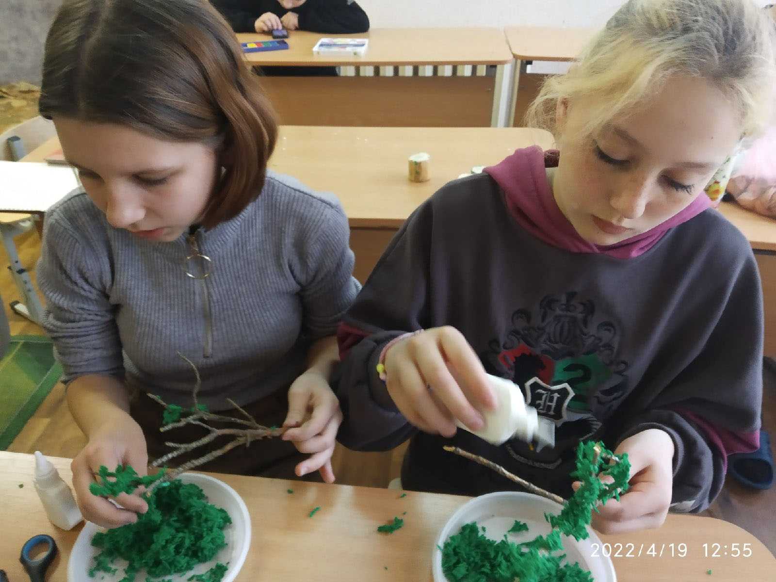 Далее ребята с увлечением и интересом изготавливали поделки, показав свое мастерство в различных техниках прикладного творчества. Фантазии ребят не было предела. Была организована выставка творческих работ под лозунгом:" Береги природу: воду, лес - здесь полно живых существ" .