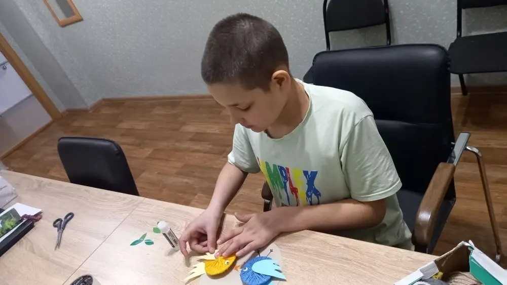 19 марта воспитанник Центра с большим энтузиазмом смастерил весеннюю поделку из цветной бумаги, ниток и ваты.