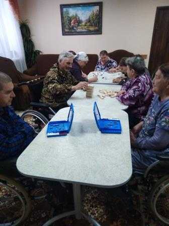 Сегодня наши проживающие в очередной раз собрались в комнате отдыха, чтобы поиграть в настольные игры и пообщаться друг с другом.