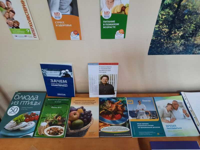 В рамках «Единой недели иммунизации – 2022» в библиотеке учреждения прошла выставка информационного материала « В здоровом теле – здоровый дух!». Проживающие познакомились с материалами по диетическому питанию, узнали об особенностях питания при сахарном диабете. Так же проживающим были розданы брошюры с упражнениями лечебной физкультуры при заболеваниях суставов.