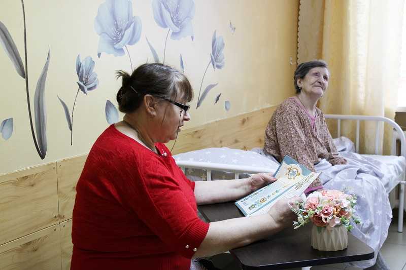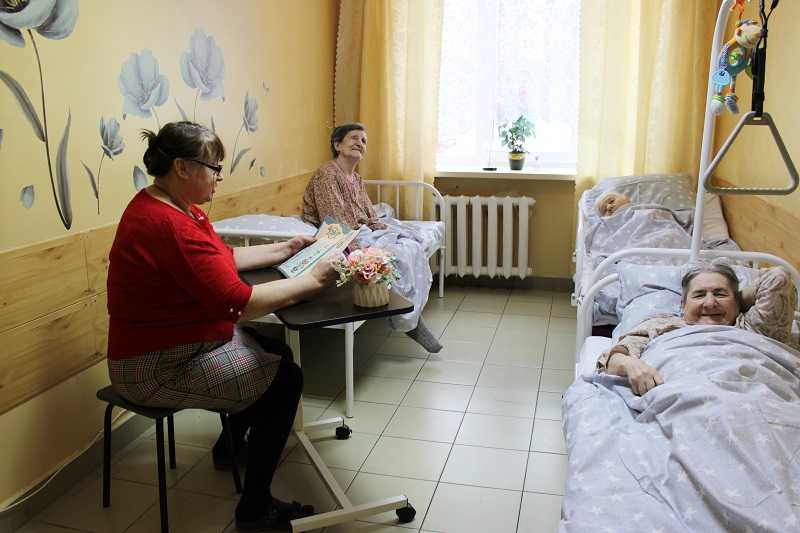 Чтение вслух полезно для людей с ограниченными возможностями, так как книга для них — это выход во внешний мир. Специалист по социальной работе дома интерната Добролюбова Елена Анатольевна читала любимые книги для немобильных проживающих в отделении милосердия.