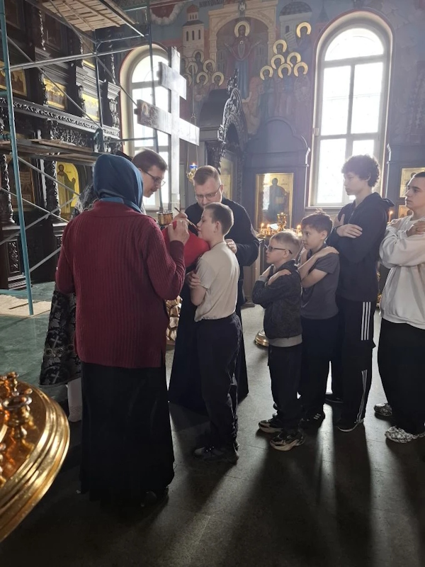 Глаза ребят светились любопытством, пока они изучали внутреннее убранство — золотые оклады икон, старинные фрески, теплый свет свечей. Каждый уголок храма привлекал их внимание и вызывал тихие вопросы: «Что это?», «Зачем это здесь?».