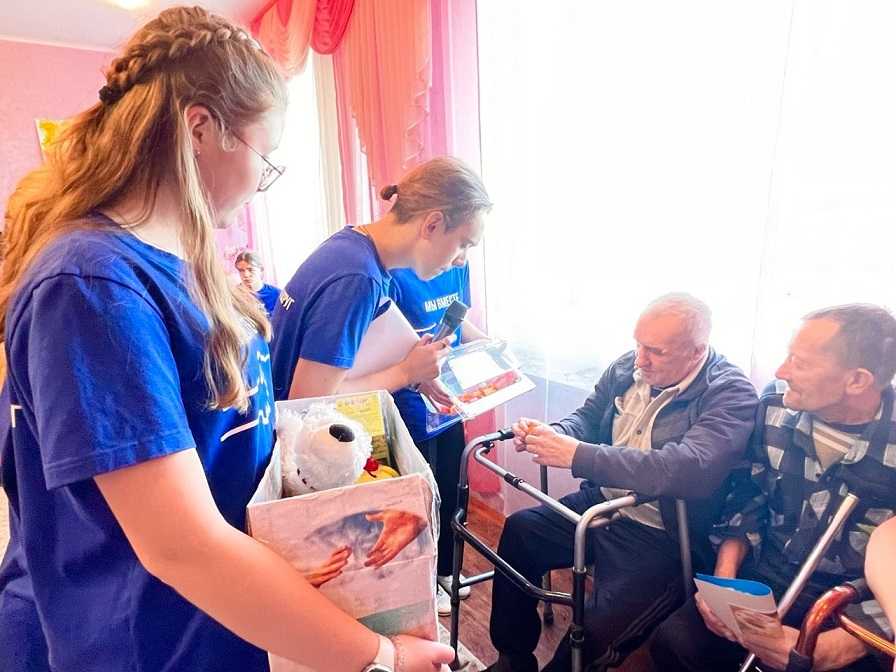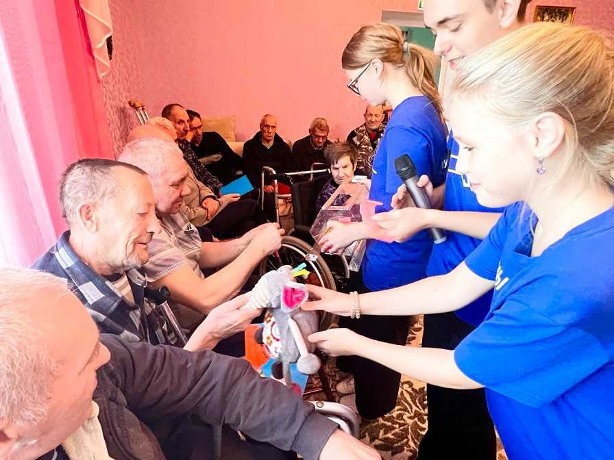 Волонтеры с большим старанием подготовили для бабушек и дедушек праздничный концерт. ?