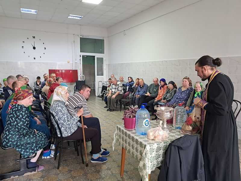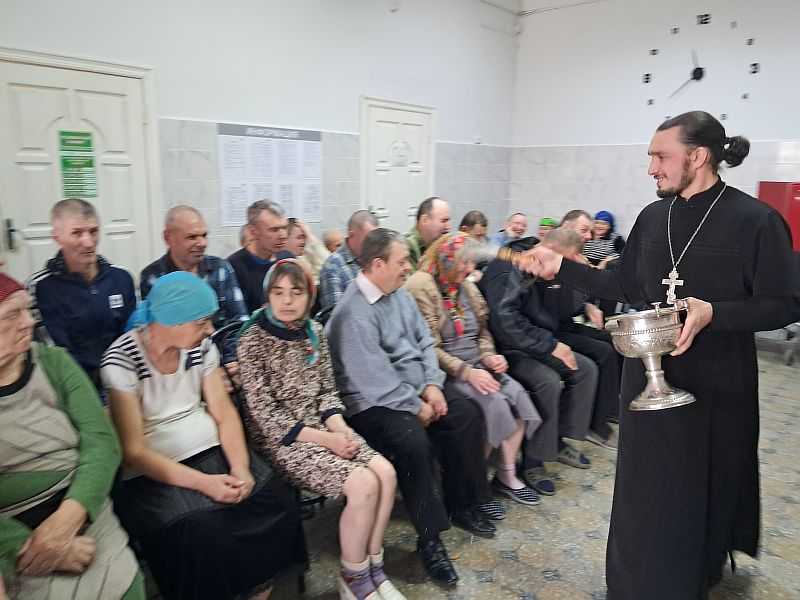Отец Михаил совершил молебен о здравии подопечных интерната. После него было совершено Таинство исповеди и совершено причастие.