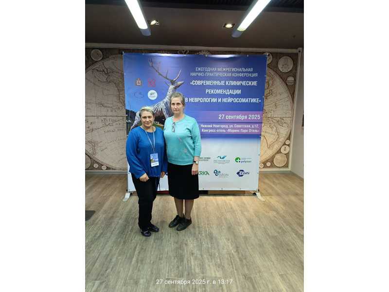 27.09.2025 года врачи-терапевты ГБУ ОСРЦИ «Пушкино» Наталья Валерьевна Чистякова и Янина Николаевна Артемьева посетили ежегодную межрегиональную научно-практическую конференцию "Современные клинические рекомендации в неврологии и нейросоматике" в г. Нижнем Новгороде. ?