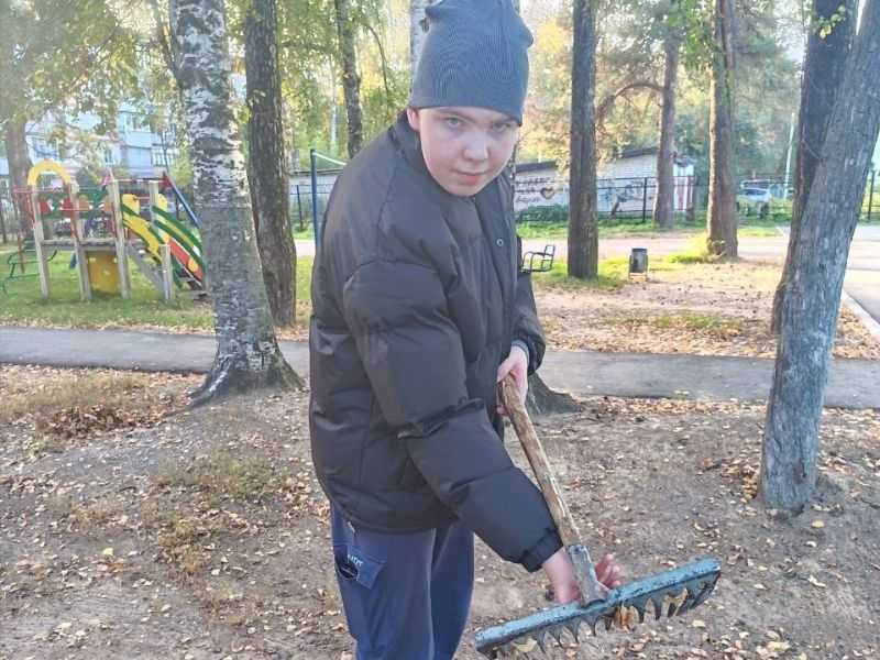 Возле центра во дворе. Нашей шумной детворе. Грабли, веники раздали. Чтобы листья мы убрали. Ребята стационарного отделения вышли на улицу, чтобы навести порядок на территории центра.